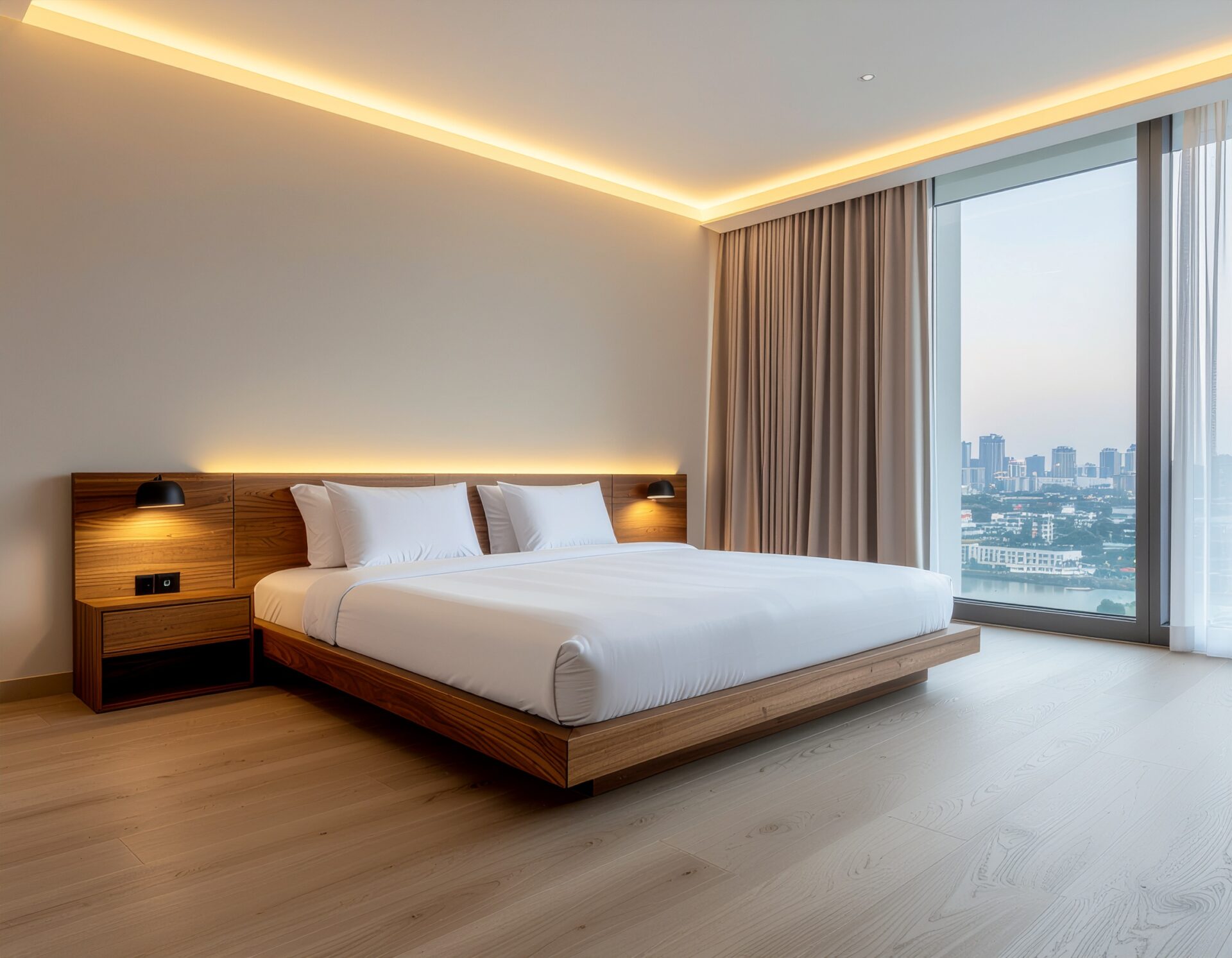Ngoài ra, phong cách tối giản rất dễ phối hợp với nhiều phong cách nội thất khác nhau như hiện đại, Scandinavian hay Japandi. Điều này giúp gia chủ linh hoạt thay đổi trang trí phòng ngủ theo từng giai đoạn mà không cần thay mới toàn bộ nội thất. Một chiếc giường có thiết kế trung tính, màu sắc trang nhã như trắng, be, nâu gỗ tự nhiên sẽ luôn giữ được giá trị thẩm mỹ theo thời gian.