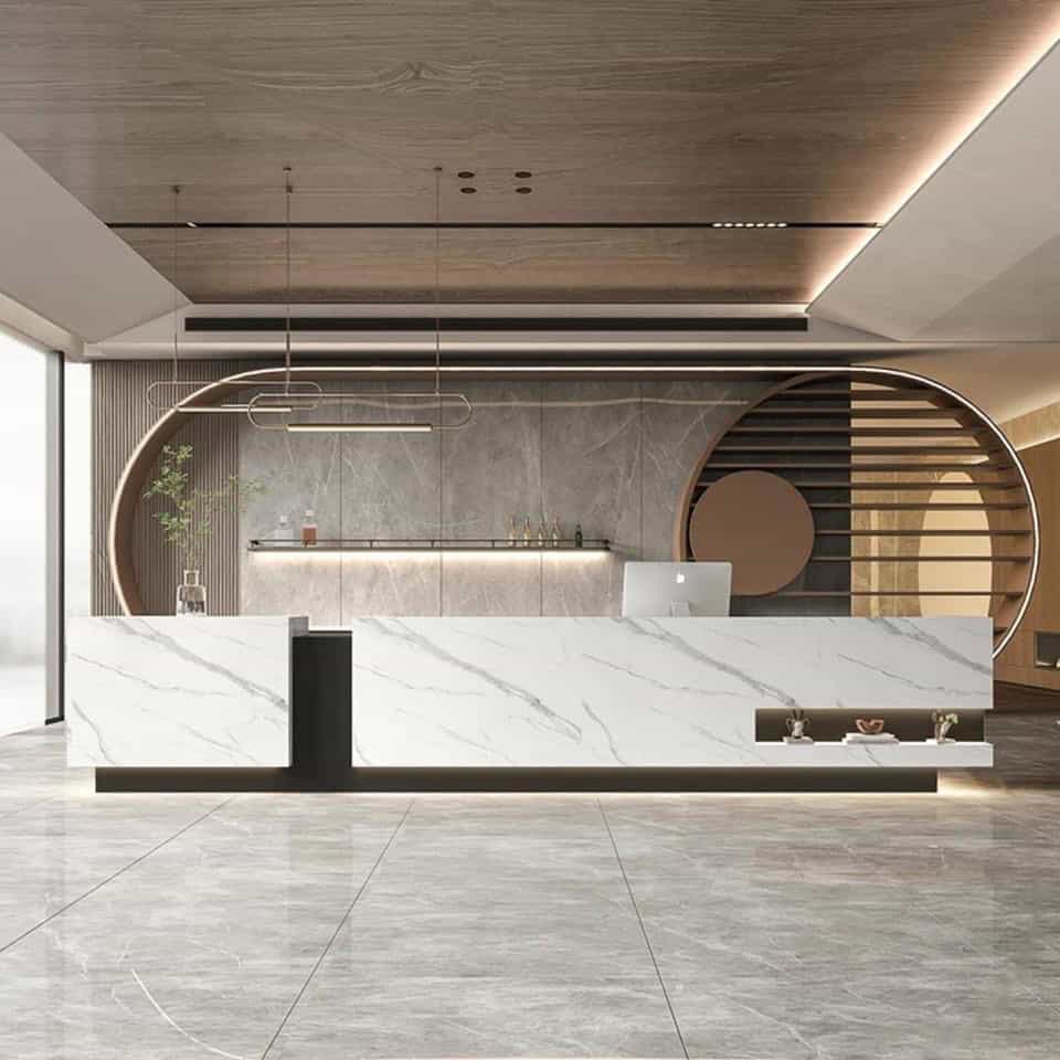 Quầy bar tròn hoặc cong: Tạo điểm nhấn độc đáo, phù hợp với không gian rộng và thoáng.