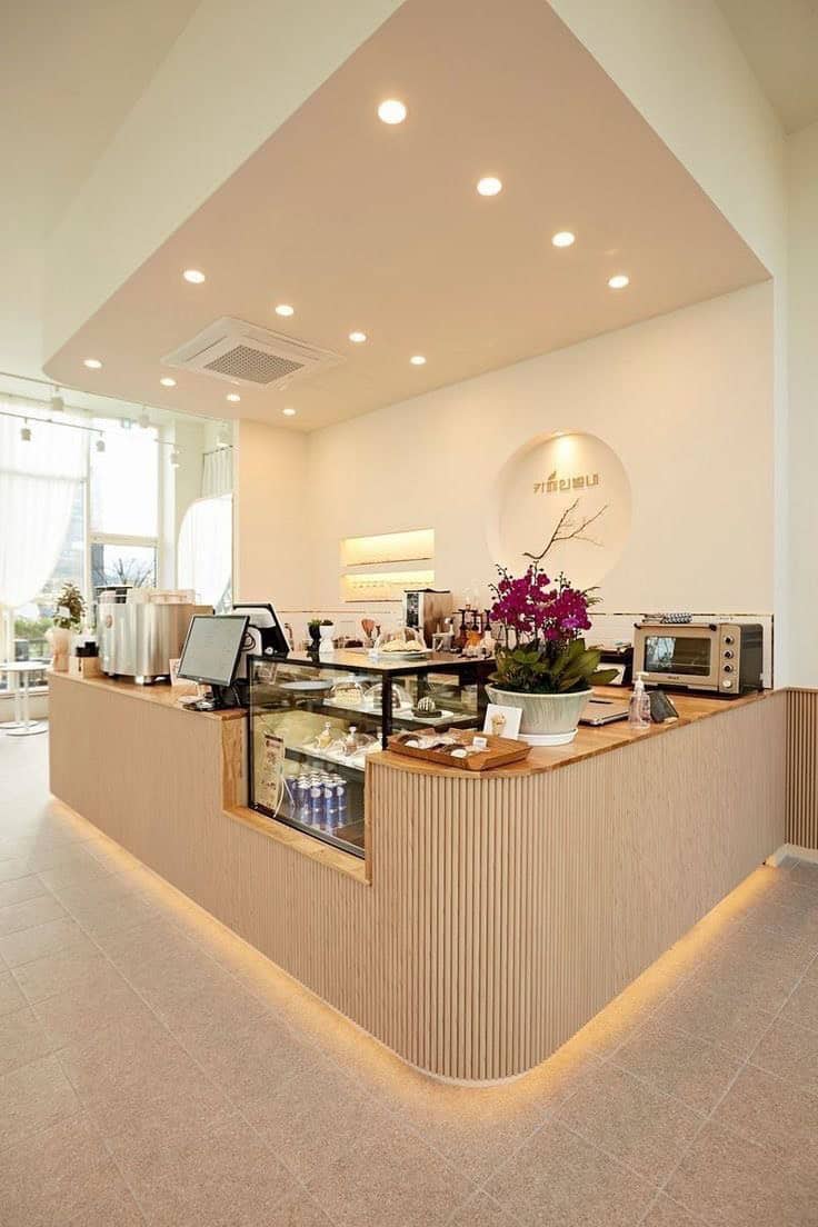Quầy bar chữ L là giải pháp cho các quán cafe muốn tận dụng góc không gian một cách hiệu quả.